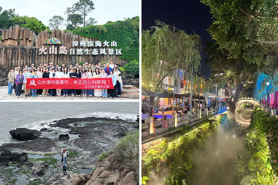 行程首日,卓艺人奔赴火山岛自然生态景区,邂逅滨海火山的独特浪漫。大家不仅亲眼见证了火山喷气口群、海蚀崖等地质奇观的鬼斧神工,更在海岸线上洒下一路欢声笑语。夜幕降临,团队漫步至漳州古城,红砖古厝、骑楼老街在灯火中更显韵味,品尝地道小吃,感受闽南烟火气息,为第一天行程画上圆满句号。